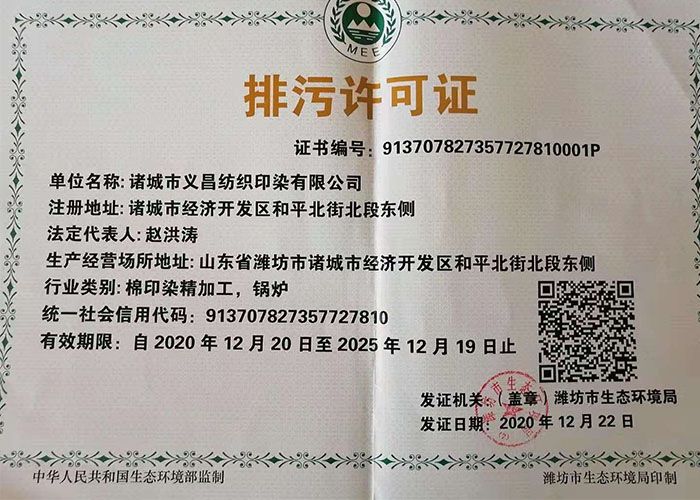 諸城市義昌紡織印染有限公司 通訊地址:山東諸城市開(kāi)發(fā)區(qū)和平北街北段東側(cè)